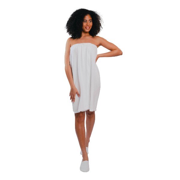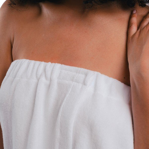 Le paréo pour femme en éponge bouclette fabriqué en France est un linge de bain incontournable dans les cabines de soin des instituts, spas, et centres de bien-être.